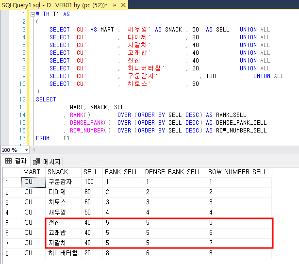 MSSQL 순위 함수 비교